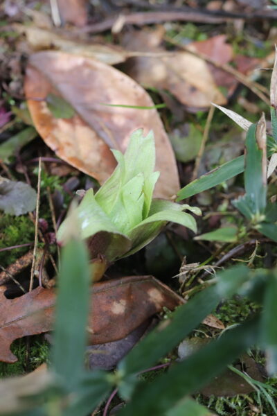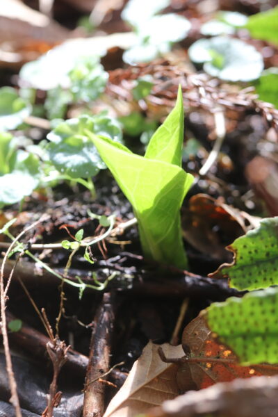 近所を散歩すると、ウバユリの新芽やふきのとうを見つけました。