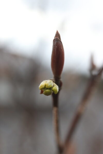 こちらはクロモジ。黄色いクロモジの花芽です。開花が近そうです。