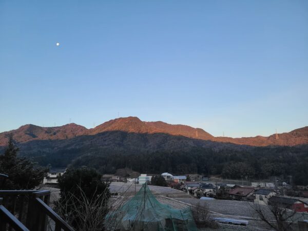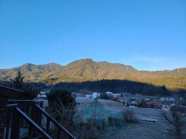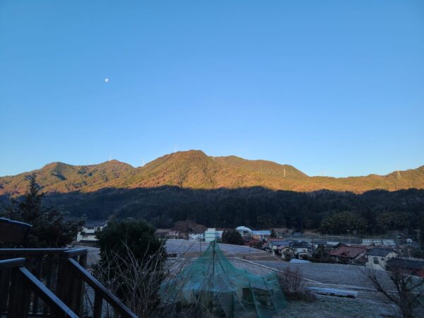 ちなみに左上には小さいですがお月様が映っています。1時間ごとくらいに写真を撮りましたが、月が山へ沈んでいきます。