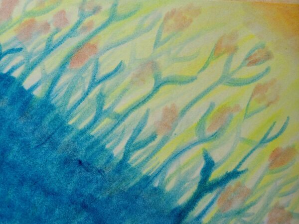 聖なる十二夜の私自身の体験全体を俯瞰してみると、この期間、特に「色」について問いをもち、考え続けていたことに気づきます。12日間の間に、ぬらし絵を4枚、層技法による色環を1枚、白黒線描を2枚描きました。そして、同時に自然界の色を注意深く観察していました。