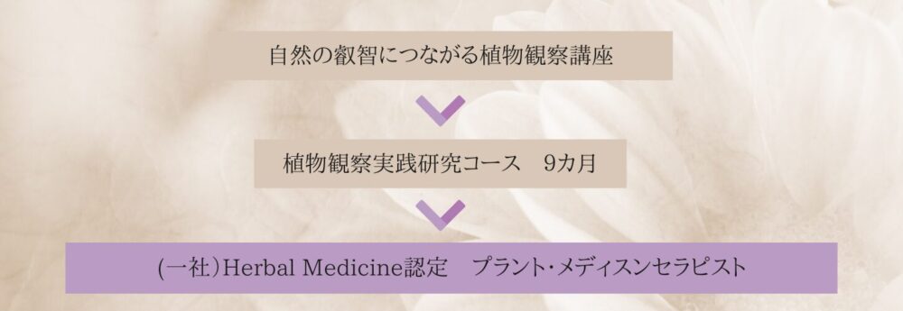 自然の叡智につながる植物観察講座受講後、植物観察の勉強を続けられますと、(一社)Herbal Medicine認定 プラント・メディスンセラピストの道も開けます。詳細はコース説明会の時にご案内いたします。